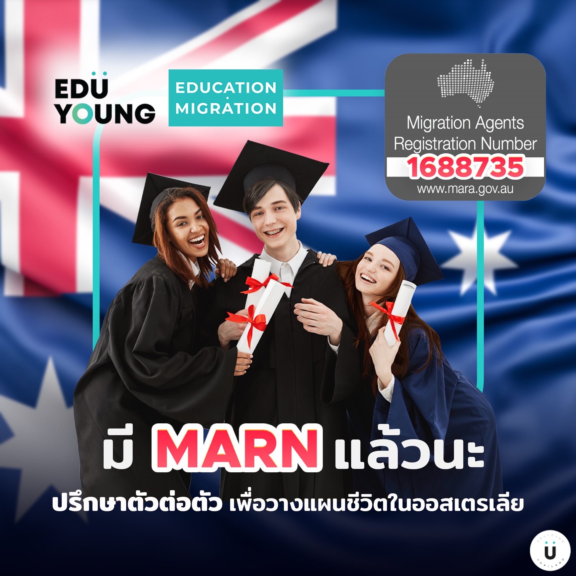 โดยหมายเลข MARN ทีม Migration ของ EduYoung ก็ได้แก่ MARN: 1688735 (สามารถตรวจสอบข้อมูลได้ที่ https://portal.mara.gov.au/search-the-register-of-migration-agents/)