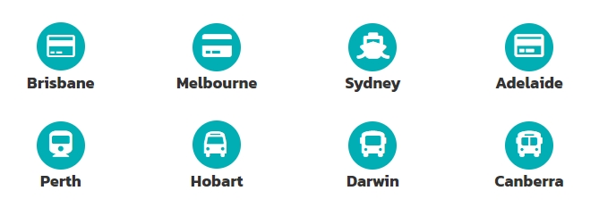 โดยระบบขนส่งสาธารณะของออสเตรเลียจะมีการจัดการแยกตามเขตพื้นที่ของรัฐต่าง ๆ เพื่อให้สะดวกต่อการจัดการภายใน แต่ละรัฐจึงมีการกำหนดระบบบัตรโดยสารภายในรัฐเอาไว้ ดังนี้