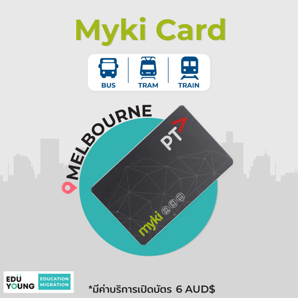 Melbourne ใช้บัตรโดยสารที่มีชื่อว่า myki ค่าเปิดบัตร $6