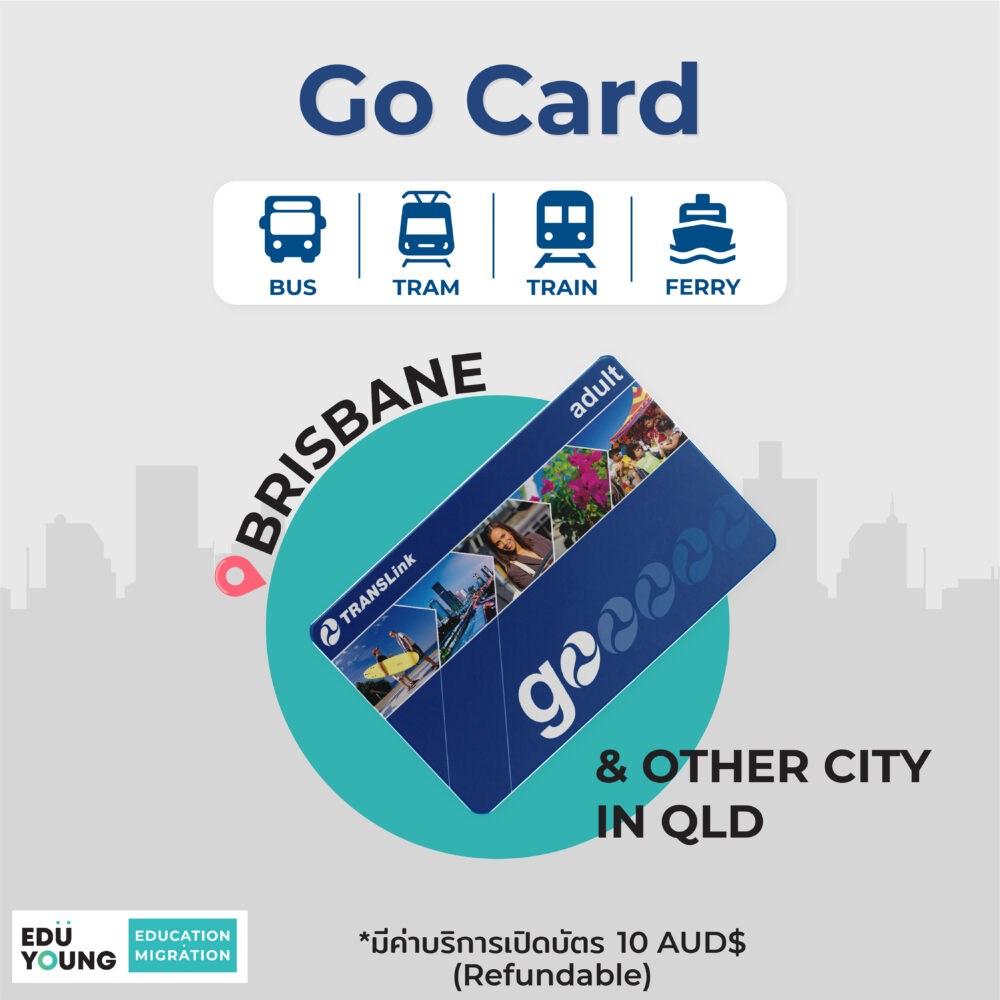 สามารถใช้งานกับขนส่งสาธารณะได้ทั้งรถบัส (Bus), รถราง (Tram), รถไฟ (Train) ไปจนถึงการโดยสารทางเรือ (Ferry) ใน Brisbane และเขตอื่น ๆ ของ Queensland มีราคาพิเศษลดค่าโดยสาร 50% สำหรับนักเรียนนักศึกษา เด็ก ผู้สูงอายุ และผู้ที่มีความต้องการพิเศษ (นักเรียนต่างชาติสามารถยื่นเรื่องขอเปิด Go Card แบบ Concession ได้ในเว็บไซต์)