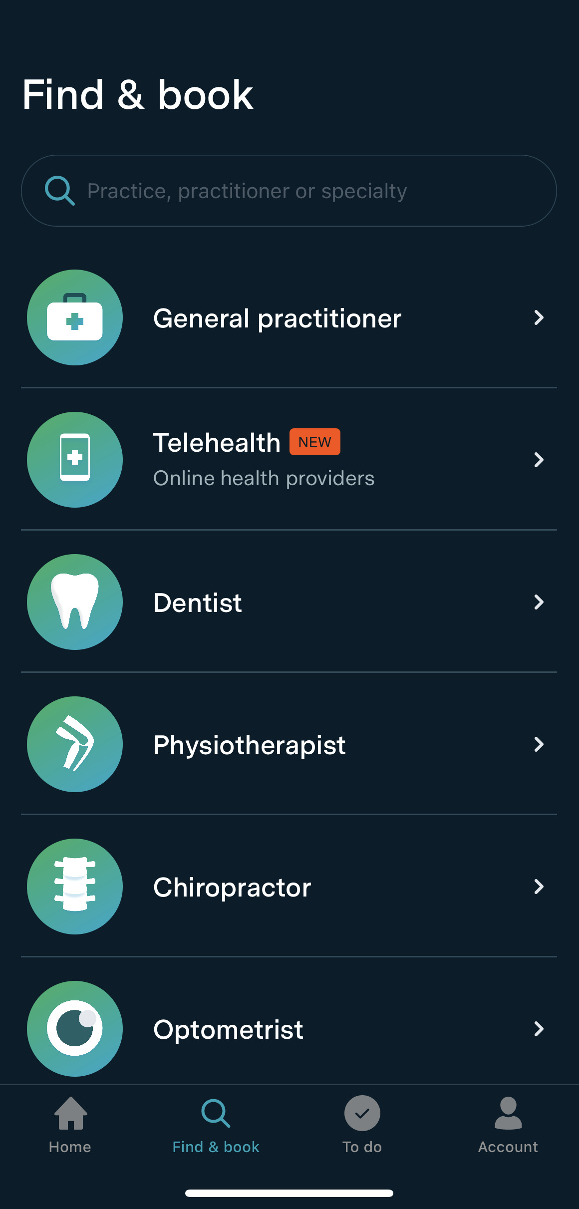 ซึ่งเค้าก็มีครอบคลุมทั้งหมด ตั้งแต่ General Practitioner(หมอปฏิบัติงานทั่วไป), Dentist(ทันตแพทย์), Physiotherapist(นักกายภาพบำบัด), Chiropractor(แพทย์ไคโรแพรคเตอร์), Optometrist(ผู้เชี่ยวชาญในการวัดสายตา), Podiatrist(การบำบัดรักษาเท้า), Psychologist(นักจิตวิทยา), Audiologist(นักแก้ไขการได้ยินหรือนักโสตสัมผัสวิทยา), Counsellor(ผู้ให้คำปรึกษา), Skin cancer physician (แพทย์โรคมะเร็งผิวหนัง) และอีกหลายๆอย่างเลย เป็นต้น