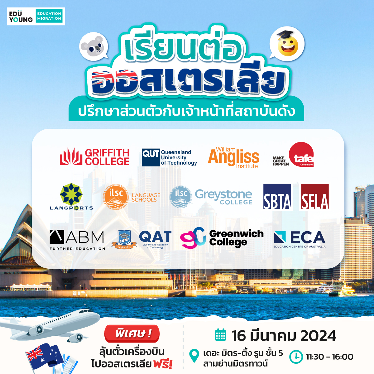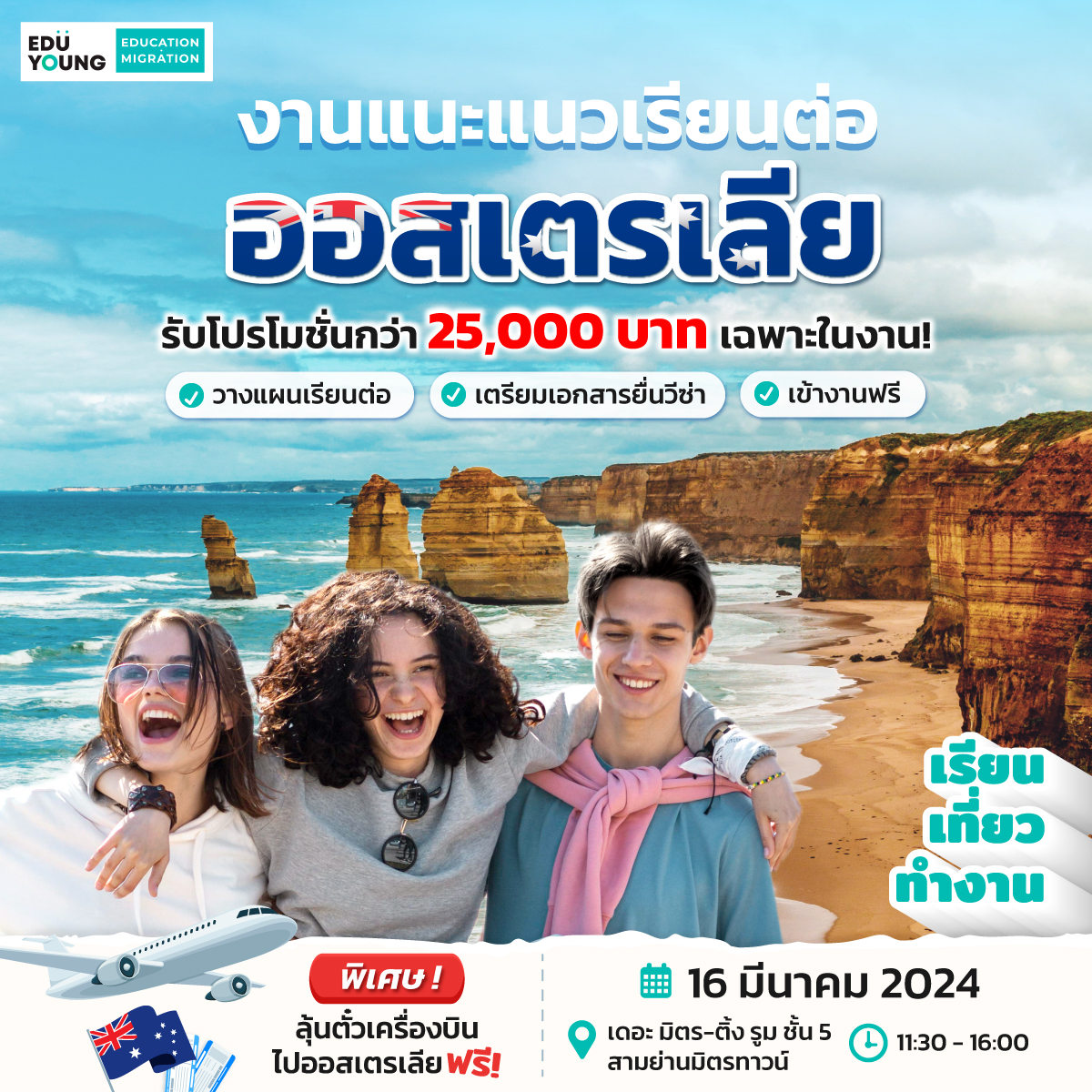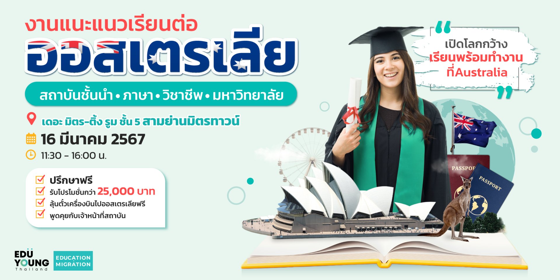 สนใจไปเรียนต่อออสเตรเลีย ลงทะเบียนปรึกษาเจ้าหน้าที่ EduYoung Thailand วันที่ 16 มีนาคมนี้ !