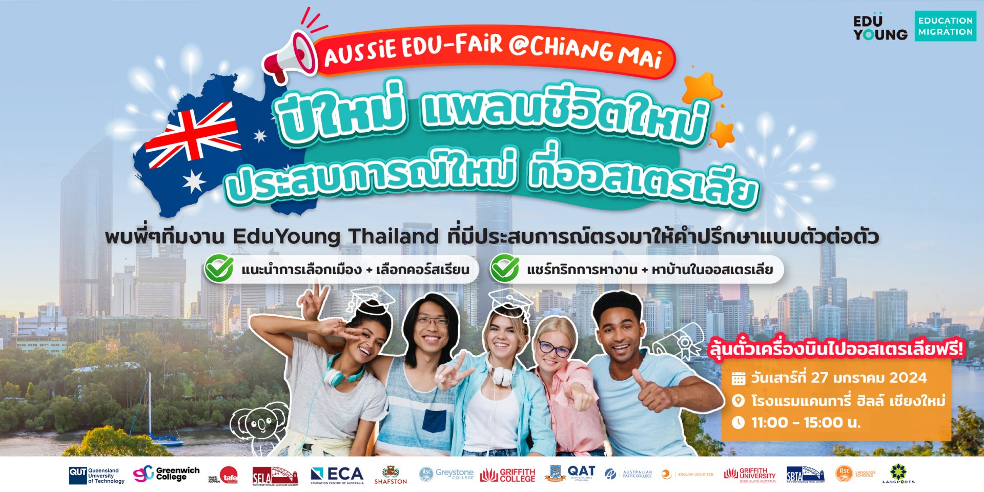 สนใจเรียนต่อออสเตรเลีย ปรึกษาเจ้าหน้าที่ EduYoung Thailand ได้ในงาน Aussie Edu-Fair วันที่ 27 มกราคมนี้เลย