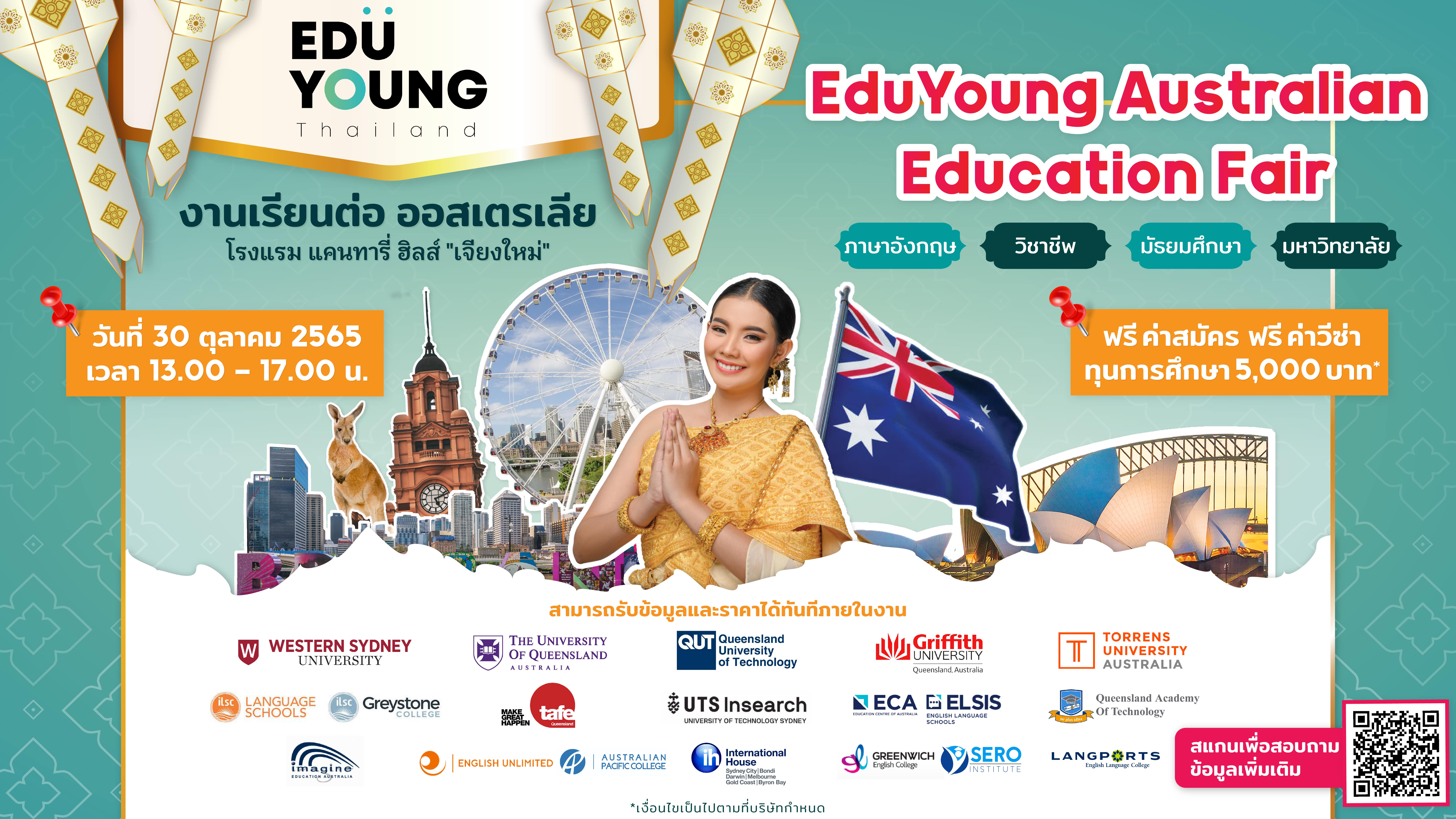 สนใจเรียนต่อออสเตรเลียพร้อมรับคำแนะนำจากทีมงาน EduYoung Thailand มางาน EduYoung Australian Education Fair วันที่ 30 ตุลาคมนี้เลย