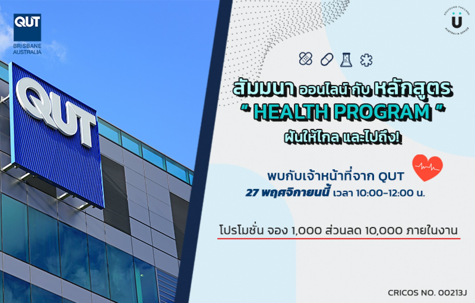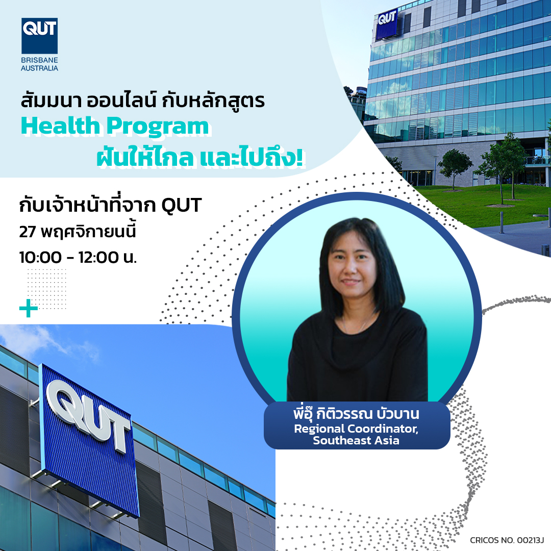 พบเจ้าหน้าที่จากมหาวิทยาลัย QUT ประเทศออสเตรเลียมาให้คำปรึกษาฟรีแบบออนไลน์ และรับโปรโมชั่นพิเศษในงาน