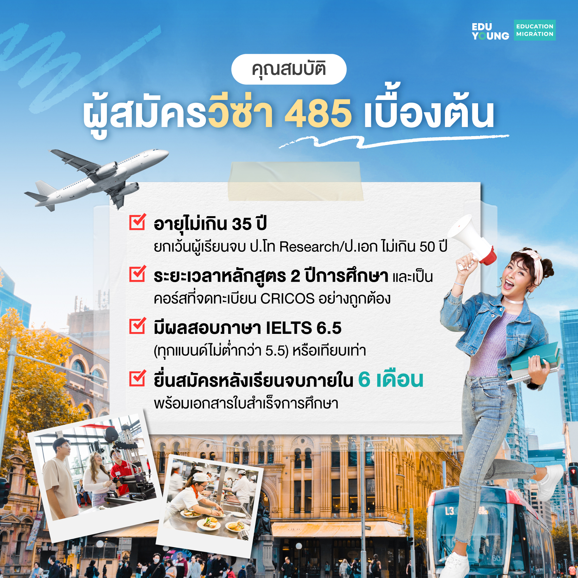บทความนี้ Eduyoung Thailand มาสรุป เงื่อนไขล่าสุด, ประเภทของวีซ่า 485 และแนวทางเลือกคอร์สเรียนที่ช่วยต่อยอดโอกาสในระยะยาวอย่างเป็นระบบ