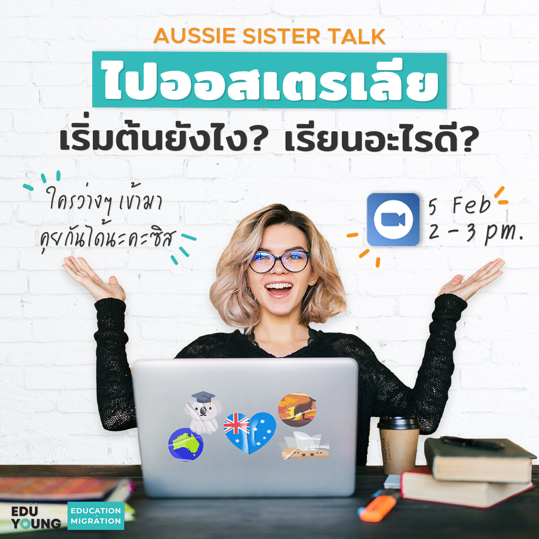 ไม่อยากพลาดข้อมูลเรียนต่อออสเตรเลีย ลงทะเบียนปรึกษาออนไลน์กับซิส EduYoung ได้ฟรี วันอาทิตย์ที่ 5 กุมภาพันธ์นี้