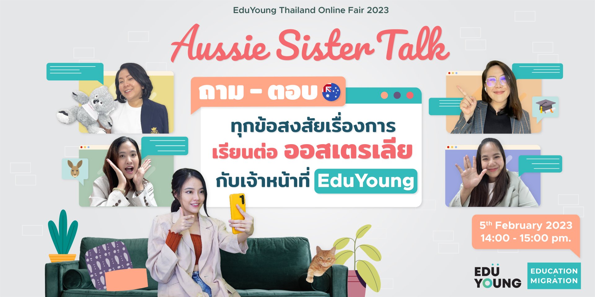 EduYoung Thailand จัดอีเวนท์ออนไลน์รับต้นปี '23 Aussie Sister Talk ถาม-ตอบ ทุกเรื่องเกี่ยวกับการเรียนต่อออสเตรเลียกับซิส EduYoung แบบครบทีม ทั้งทีมไทย (กรุงเทพ+เชียงใหม่) และทีมออส (บริสเบน+ซิดนีย์) มาครบ !